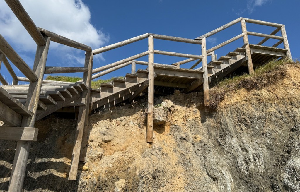 Auch dieser Treppe hat es die Stützen weggespült.
