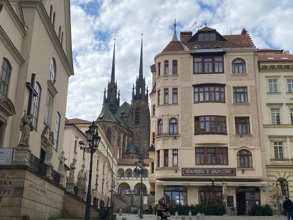 Die St.-Peter-und-Paul-Kathedrale ist auch auf der tschechischen Zehn-Kronen-Münze verewigt (=ca. 40Rp.) . Und wenn mich mein 5-Wörter-Tschechisch nicht täuscht, ist das Kavárna u Kapucinú das ‘Café zum Cappuccino’… Man gewähre mir nochmals fünf bis zehn Jahre, und ich kann das !
