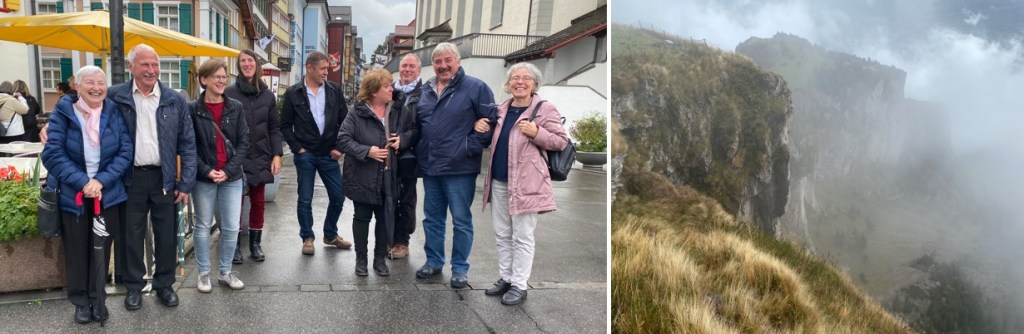 Ganz links das ‘Goldene Hochzeitspaar’ – meine Schwester Elisabeth und Sepp, im Bild rechts die eher verhaltene Weitsicht vom Hohen Kasten aus. Spass gemacht hat das Fest auf jeden Fall ! 😊 Nochmals herzliche Gratulation ! Weiter so !