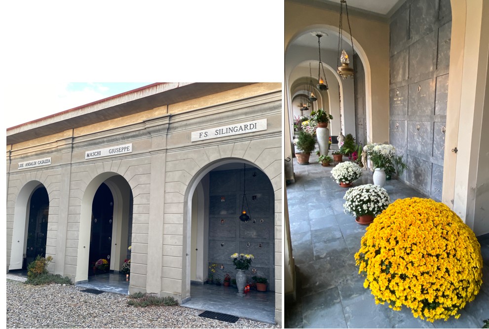 Nur der schicke Friedhof beim Dorfeingang schliesst heute nicht wie sonst um 16 Uhr, und die Familien-Nischen sind alle mit frischen Blumen garniert. Ach so – es ist halt immer noch Allerheiligen !