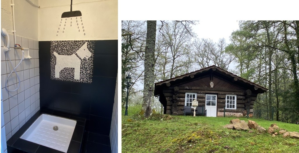 Die Duschen sind blitzsauber – auch die Hundedusche ! Das Châlet rechts wird momentan vom Holzwurm bewohnt, soll aber nach dessen Zwangs-Ausweisung wieder in Betrieb genommen werden als Sommerbar.