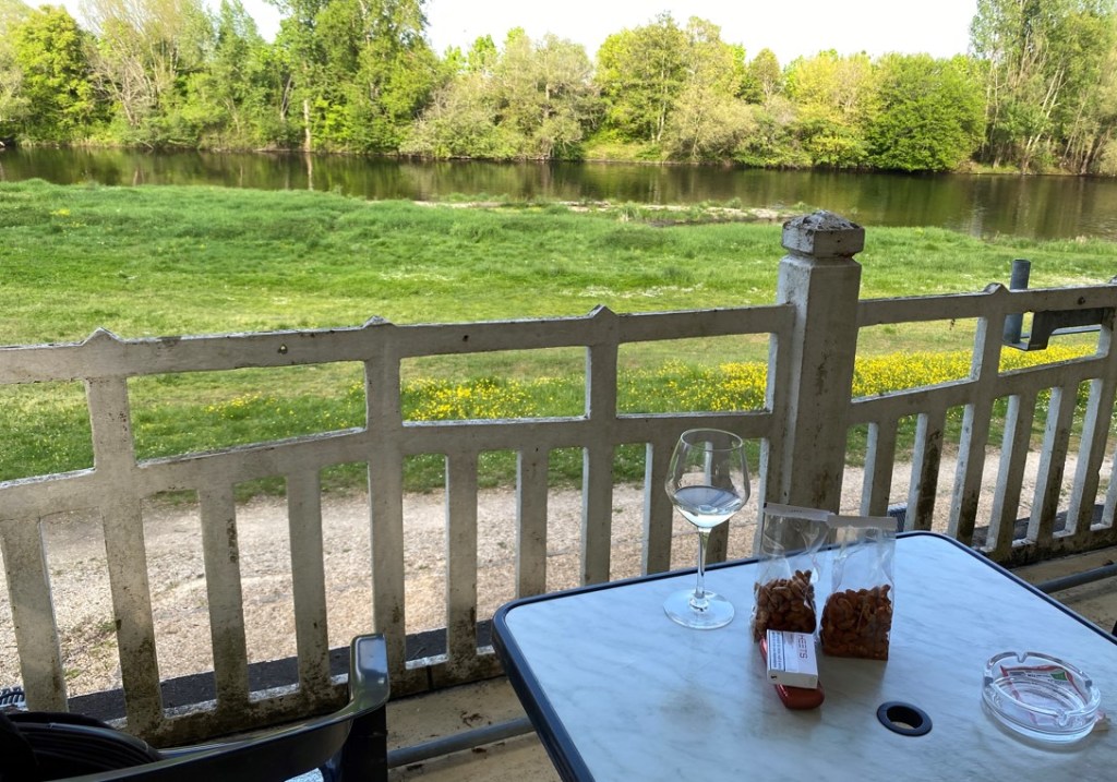 Der freundliche Platzbesitzer Philippe öffnete die Bar extra für mich. Das Glas Rotwein aus der Gegend und die Aussicht hinunter auf den Fluss Gartempe passten ausgezeichnet zusammen..