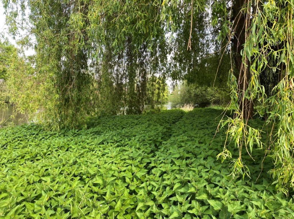 Diese Brennessel-Plantage am Flussufer habe ich zu Fuss grossräumig umrundet – im Gegensatz zu demjenigen, welcher diese Spur in der Mitte hinterlassen hat..