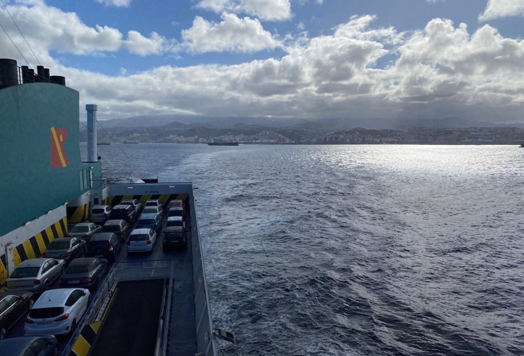 Meine Fähre ‘Marie Curie’ legte am 20. März in Las Palmas mit fünfeinhalb Stunden Verspätung ab Richtung Huelva, und ich fand das ganz wunderbar !