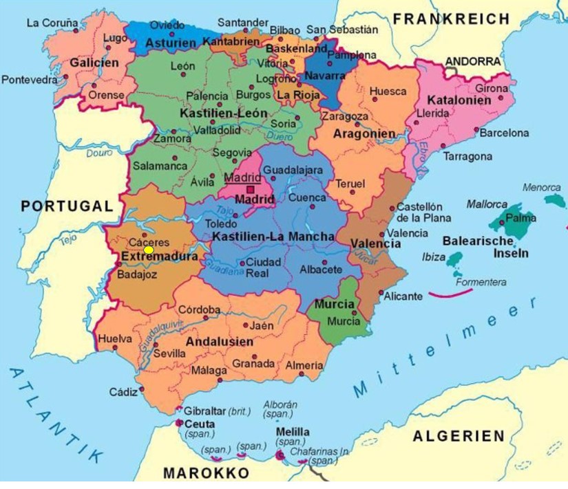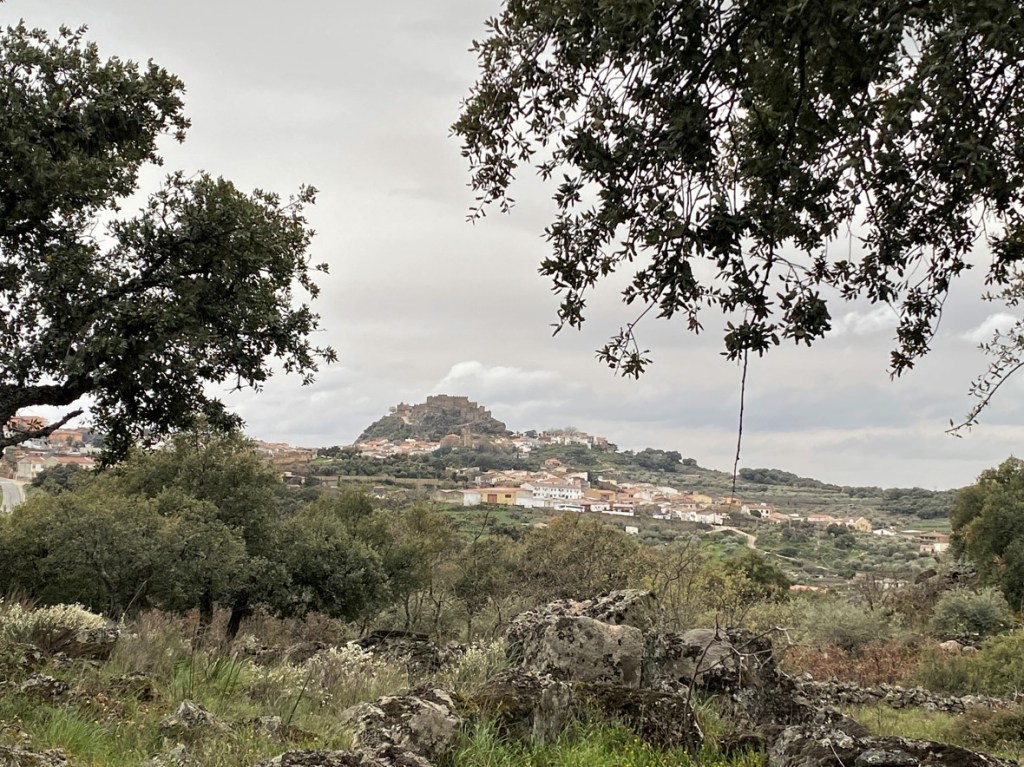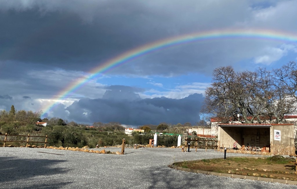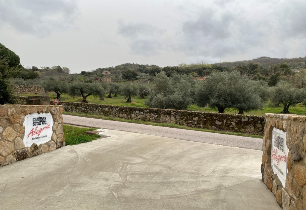 Nach mehreren Kaffeehalts landete ich schliesslich in der Region Extremadura nahe der portugiesischen Grenze auf dem ‘Camper Stop Alegría’ (ungefähr beim gelben Punkt auf der Karte).