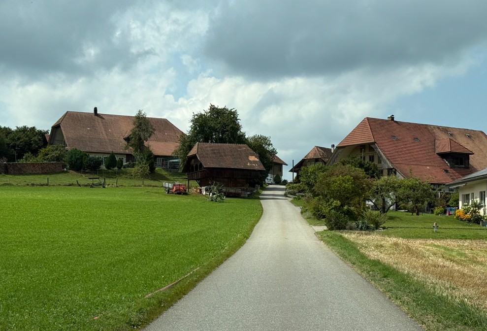 Doch zuerst die erwartete Version: Tief gezogene Walmdächer auf stattlichen Bauernhäusern – ein Genuss!