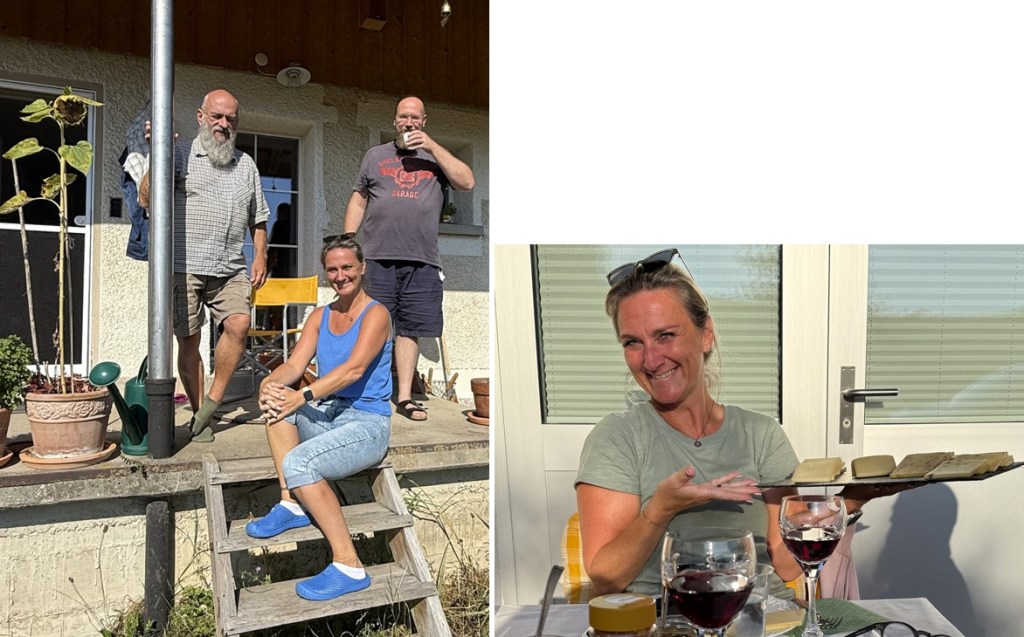 Ein fröhliches Raclette in der Abendsonne vor Peters Haus. War das GUT ! ! Mein erstes dieses Jahr !