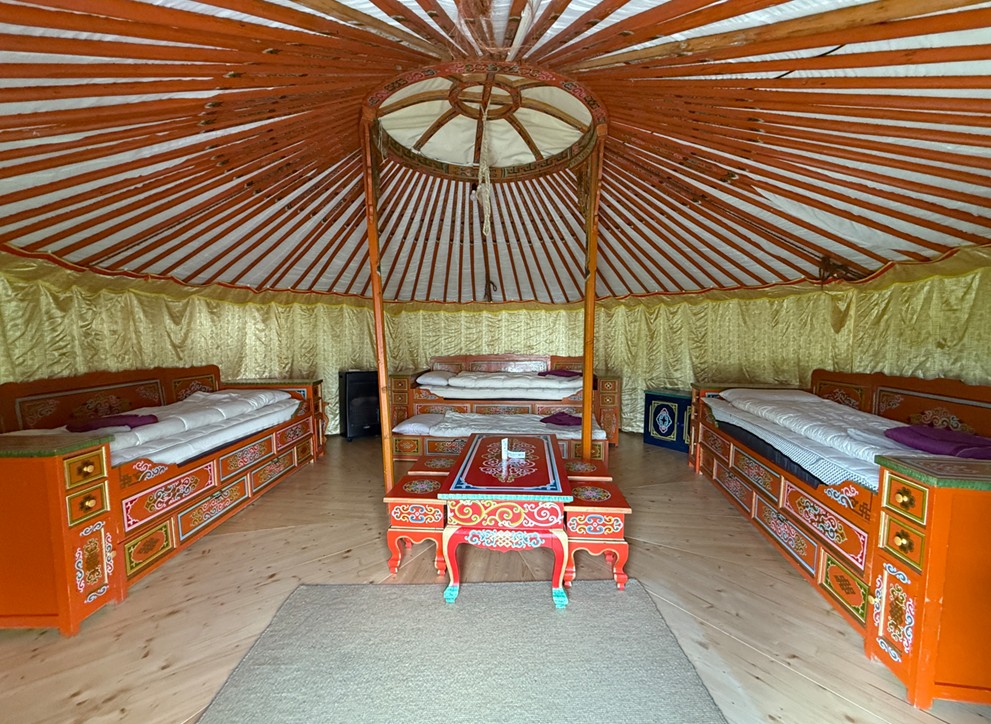 Die Kamele warten auf ihre Trekking-Gäste, und der rote Teppich rechts führt direkt zum Hofladen…