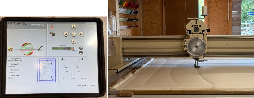 Diese programmierte Maschine steppt die Duvet-Nähte völlig selbstständig..