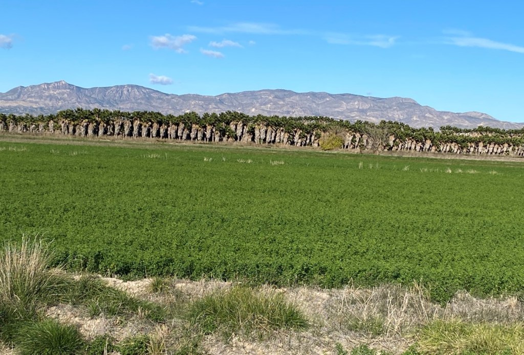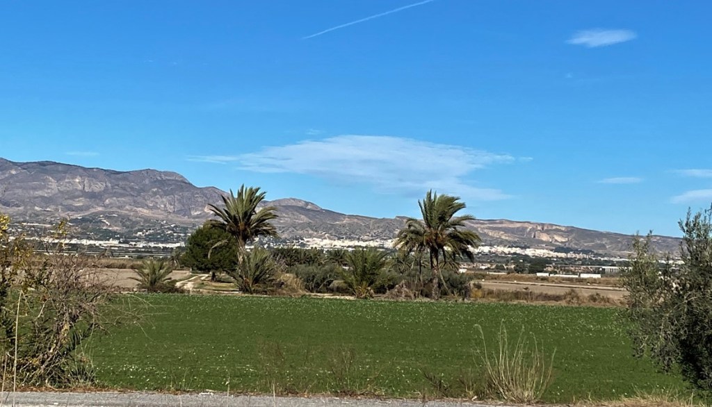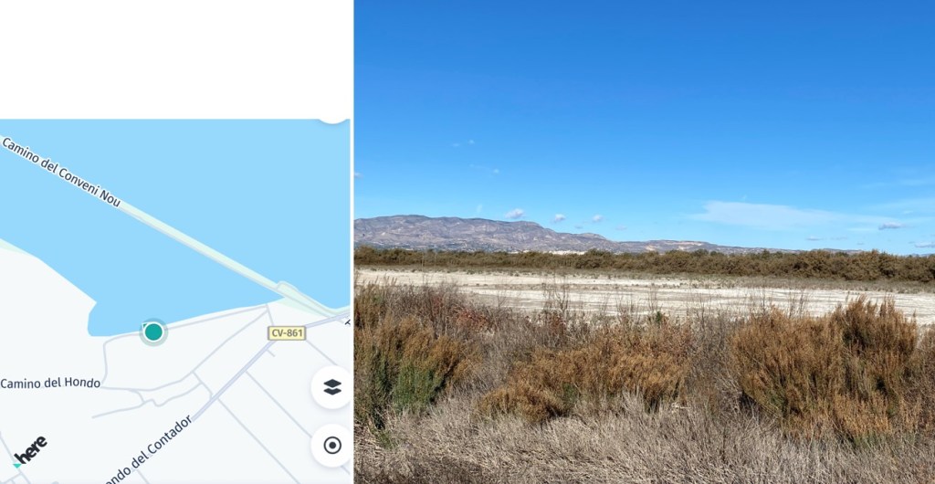 Laut meinem Karten-App liegt gleich um die Ecke der See El Hondo mit der Laguna del Fondo und mit einem Damm, den ich mit dem Velo überqueren wollte.