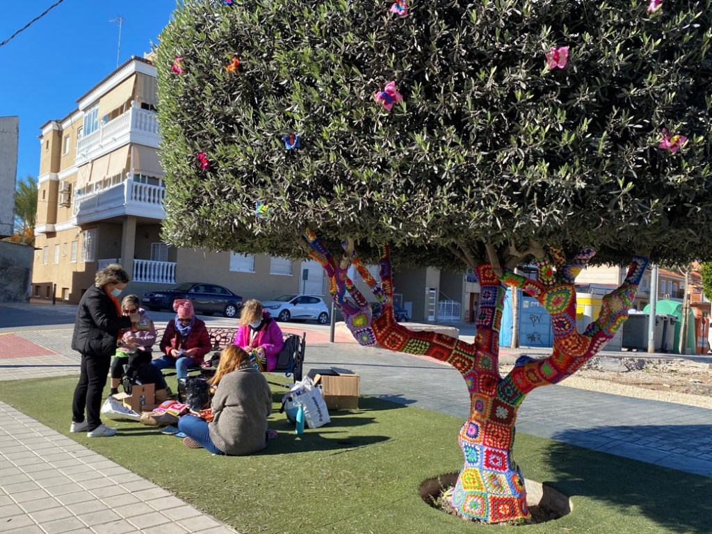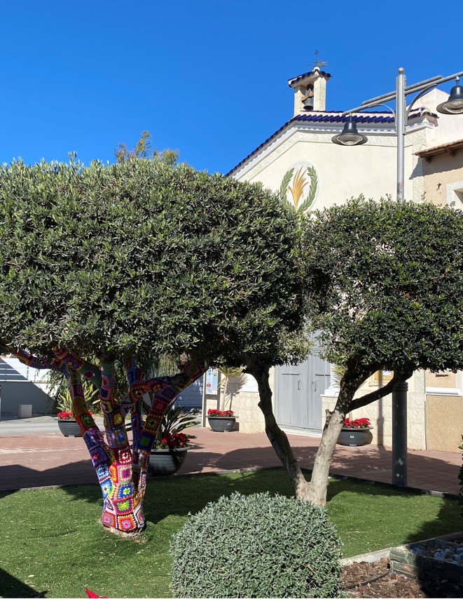 Auf dem Rückweg von meiner trockenen Seefahrt kam ich in den Vororten von Catral an diesen dekorierten Bäumen vorbei. Die Frauen erklärten mir, es ginge um ein Nachbarschaftswerk und ein gemeinsames Hobby. Ich glaube, ich habe solchermassen dekorierte Bäume schon an einigen Orten gesehen in Europa, vielleicht auch in der Schweiz…? Eine hübsche Idee ist es alleweil.