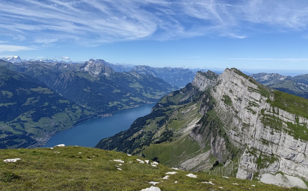 Die Churfirsten gehören zu den Appenzeller Alpen – hier deren Steilwand hoch über dem Walense.