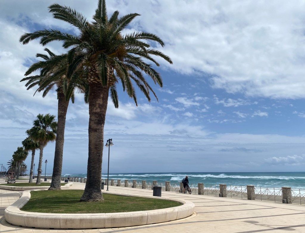 Ernst und das Meer nach unserer Cappuccino-Pause an Roccellas schicker Promenade.