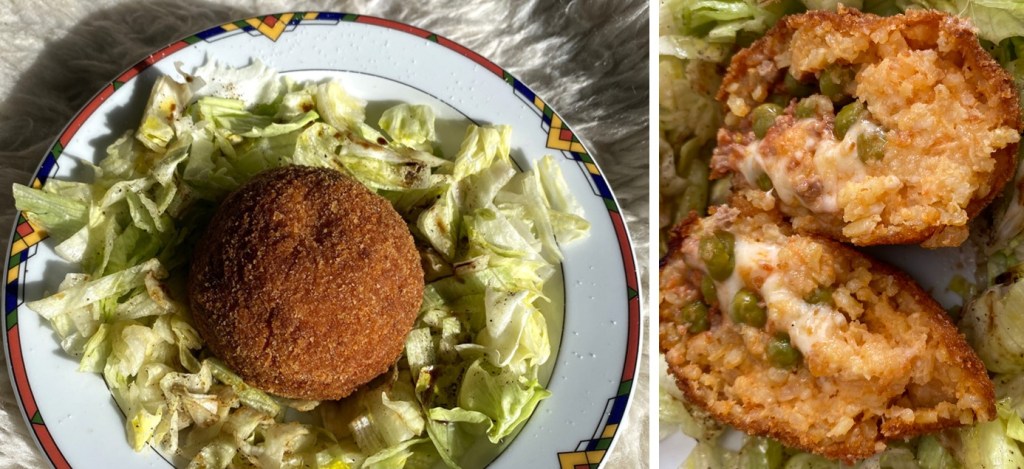 Die frittierte Reiskugel ‘Arancino’ mit ihrer Füllung aus Käse, Schinken und Erbsen ist locker eine ganze Mahlzeit für mich (Arbeiter vertragen wahrscheinlich zwei oder drei davon.. 😊), und sie ist sowas von gut! Die Orts-Bäckerei ‘Sgranocchio’ bietet sie in verschiedenen Ausführungen an. Che buono !