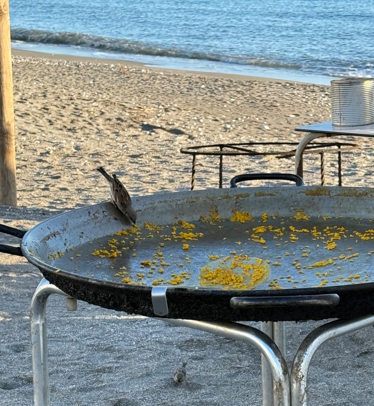 Beim Chiringuito Mauri am Strand vorne steht eine grosse Paella-Pfanne, und hier kann man ausnahmsweise auch eine Einzelportion bestellen. Toll !