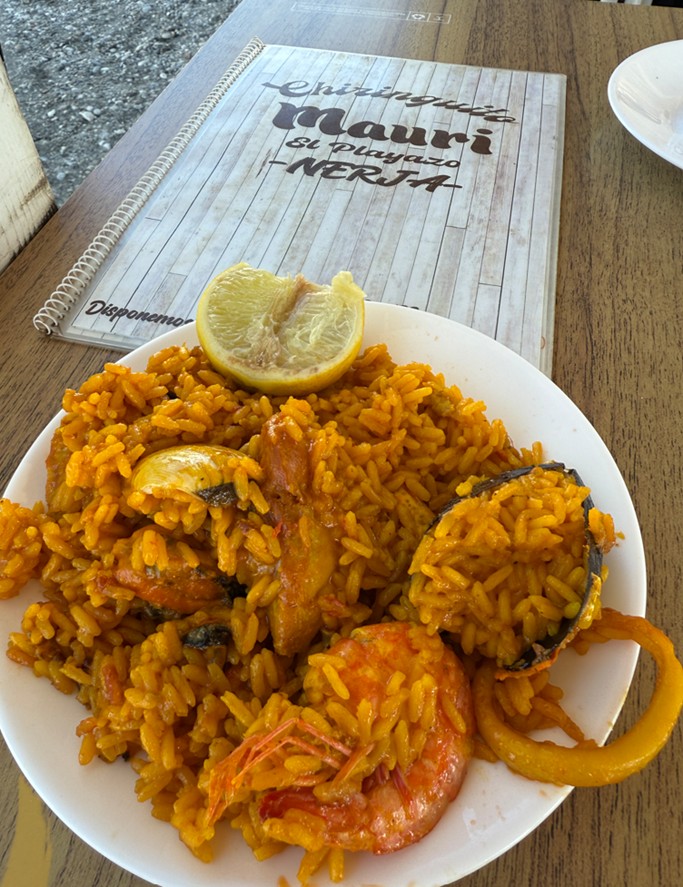 Nach dem Schrecken mit den beiden Damen genoss ich mein Glas Rosé und meine halbe Paella besonders, denn ich konnte beides sogar noch bezahlen ! – – – –  Es braucht erstaunlich wenig, um sich vom Schicksal begünstigt zu fühlen, nicht ? 😊