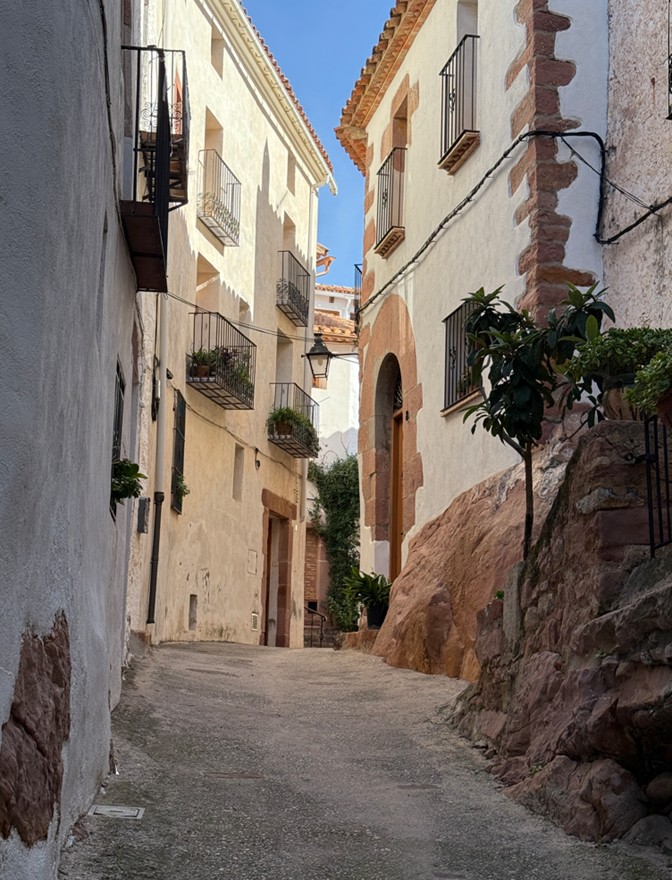 Villafamés gehört zur Region Valencia; in Valencianisch heisst es denn auch Vilafamés mit nur einem ‘l’. Ach ja: Valencianisch ist eine Varietät von Katalanisch ! Einfach, damit es nicht allzu einfach wird für uns, gell..