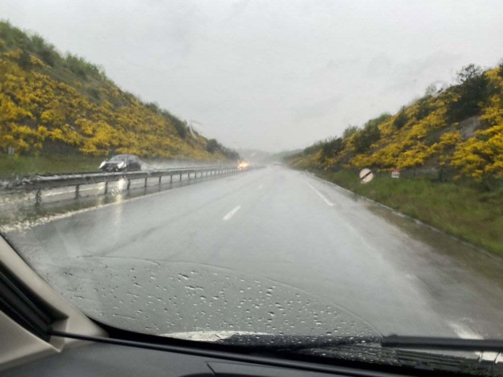 Da ich sowieso nichts sehen konnte, wählte ich die Autobahn; das macht den Regen zwar nicht besser, aber kürzer..