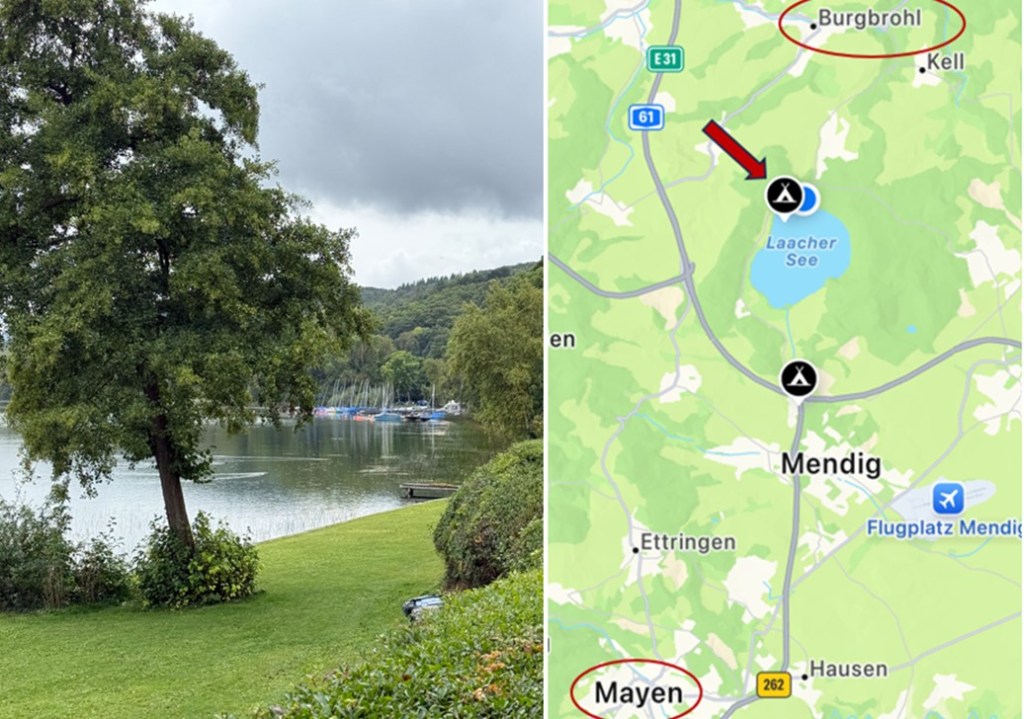 Der Camping Laacher See liegt ideal zwischen Mayen, wo sich Peters Wohnung befindet, und Burgbrohl, wo er momentan bei seinem Freund Franz wohnt.