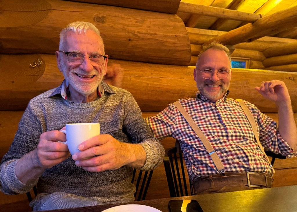 Es hat geklappt ! Am 21. September kamen Peter (links) und Franz zu mir ins Blockhaus, und wir haben gemütlich gespiesen, geplaudert und einen lustigen Abend verbracht miteinander. Schön war’s, danke !
