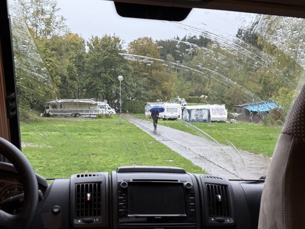 23.9.25 Auf der Weiterreise vom Laacher See zu Losheim am See wurde ich nicht nur den ganzen Weg über verregnet, sondern dort erst so richtig richtig auf dem Campingplatz Wellnester.